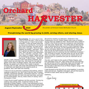 Click on the editions below if you'd like to view the current edition of the Orchard Harvester, our church e-newsletter. You can also view recent past Orchard Harvester newsletters to get a feel for how we stay connected with one another and support each other in ministry.